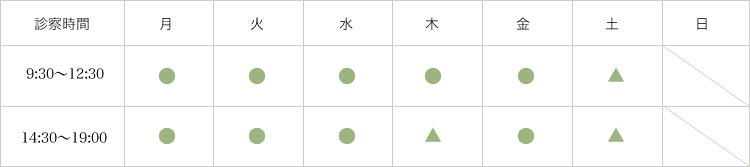 ※ 木曜日および土曜日は、週により休診の場合がございますので、ご来院の前にお問い合わせくださいませ。